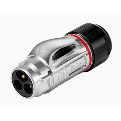 The connector is highly resistant to dust and moisture (IP67 protection), making it suitable for use in difficult conditions. The case material is durable, providing durability and protection from mechanical damage. The connector has a three-point-connection design, allowing for easy and quick connection. The contacts are made of high quality copper alloy.