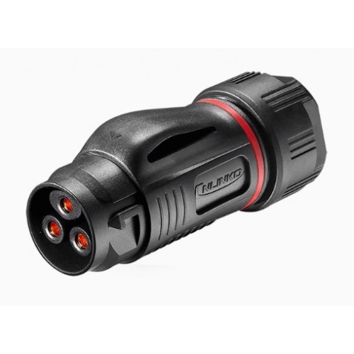 The connector is characterized highly resistant to dust and moisture (protection according to the IP67 standard), which makes it suitable for use in difficult conditions. The case material is durable, providing durability and protection from mechanical damage. The connector has a three-point-connection design, allowing for easy and quick connection. The contacts are made of high quality copper alloy.