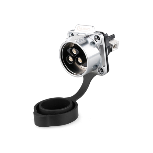 Sealed power connector series LP - LP-28-J03SX-23-401 - 3-pin LP series sealed panel socket with direct cable outlet 8-6 AWG and lock. The rosette has a through diameter - 28 mm, connects circuits up to 35 A and voltage up to 500 V .
