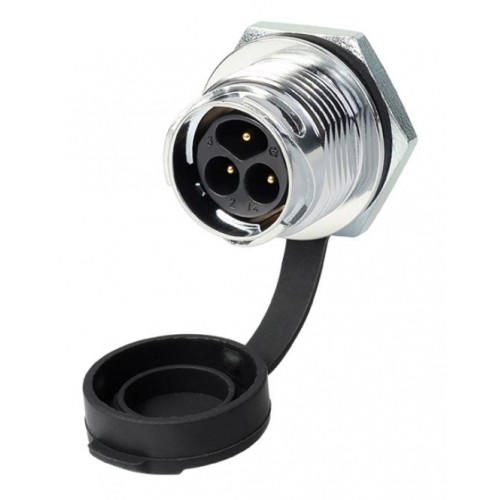 Quick disconnect connector (bayonet) DH-16-C03SX-03-101A - 3-pin sealed panel plug with mounting to the panel - nut behind. It has a mounting diameter of 16 mm - a connector for manual connection, internal installation, connects the circuit 10 A and voltage up to 400 V.