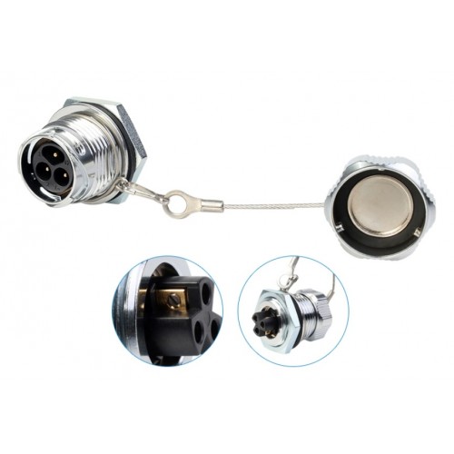 Quick disconnect connector (bayonet)  DH-16-C03SX-23-102A  - 3-pin sealed panel plug with mounting to the panel - nut behind. It has a seating diameter of 16 mm - a connector for manual connection, internal mounting, fixing contacts - under screws, connects the circuit 10 A and voltage up to 400 V.