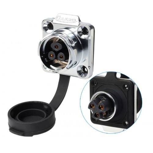Quick disconnect connector (bayonet) DH-16-J03SX-23-401A - 3-pin hermetic panel socket with fastening to the panel - by 4 screws. It has a seating diameter of 16 mm - a connector for manual connection, internal mounting, fixing contacts - under screws, connects the circuit 10 A and voltage up to 400 V.