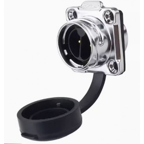 Quick connector (bayonet) DH-20-C02SX-03-401A- 2-pin sealed panel plug with direct cable outlet. It has a mounting diameter of 20 mm - a manual connection connector, cylindrical, internal mounting, connects circuits 20A and voltage up to 500V.