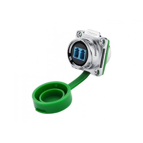 LC-sealed optical connector duplex DH-24-J/LC/213/SX-43-401 - the optical socket has a mounting diameter 24mm, this is a manual connection connector, cylindrical, internal volumetric installation, connects optical fiber. This type of connector refers to connections with increased installation density.