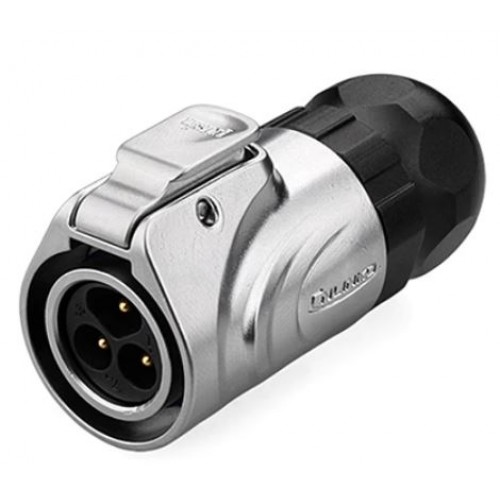 Sealed power connector LP series - LP-16-C03PE-03-001 - 3-pin LP series sealed cable plug with direct cable outlet 18-16 AWG. The fork has a bore diameter of - 16 mm, connects a circuit up to 10 A and voltage up to 400 V.