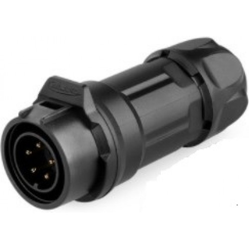 Sealed power connector series LP- LP-16-C05PP-02-001 - 5 contact LP series sealed cable plug with direct cable outlet 22-20 AWG,connects a circuit with a load of up to 5A and 250V. The fork has a bore diameter - 16 mm.