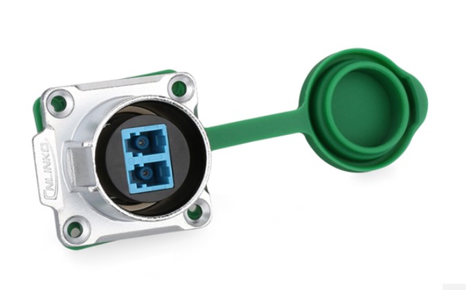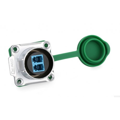 LC duplex LP-24-sealed optical connector J/LC/213/SX-43-401 - panel socket, has a mounting diameter of 24 mm, this manual connection connector, cylindrical, internal volumetric installation, connects optical fiber. This type of connector refers to connections with increased installation density.