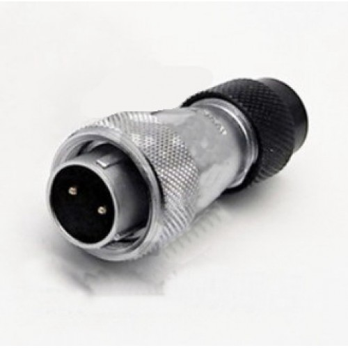 Connector WF16J2TN1 - two-pin sealed cable plug with direct cable outlet. It has a mounting diameter of 16 mm, connects a circuit with a current of up to 10A and a voltage of up to 500V, the wires are fastened by soldering. Degree of protection - IP55.