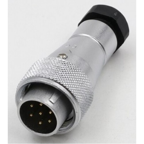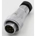 Connector WF16J7TA1 - seven-pin sealed cable plug with direct cable outlet. It has a mounting diameter of 16 mm, connects a circuit with a current of up to 5A and a voltage of up to 400V, the wires are fastened by soldering.