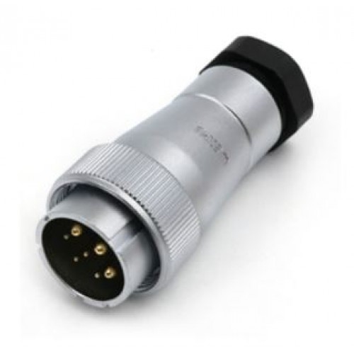Connector WF32J8TA1 - eight-pin sealed cable plug with direct cable outlet. It has a mounting diameter of 32 mm, connects a circuit with a current of up to 10A (5 contacts) and 50A (3 contacts) and a voltage of up to 500V, the wires are fastened by soldering. font>
