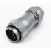 Connector WF32J8TE1 - eight-pin sealed cable plug with direct cable outlet. It has a mounting diameter of 32 mm, connects a circuit with a current of up to 50A (3 pins) and 10A (5 contacts) voltage up to500V, the wires are fastened by soldering.