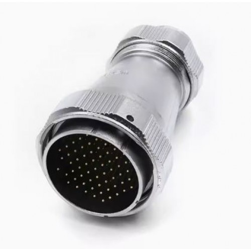 Connector WF55J61TE1 - sixty-one pin sealed cable plug with direct cable outlet. It has a mounting diameter of 55 mm, connects a circuit with a current of up to 10A and voltage up to 500V, The wires are fastened by soldering.
